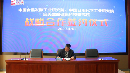 4月18日,食品院、日化院與完美生命健康科技研究院舉行戰略合作簽約儀式,儀式由中國輕工集團有限公司副總經理、食品院黨委副書記、董事長、日化院董事長蔡木易,完美(中國)有限公司董事長古潤金在云端完成簽約儀式,完美生命健康科技研究院名譽院長徐華鋒,食品院副院長魯軍、段盛林,功能肽研發部主任谷瑞增全程參與見證。