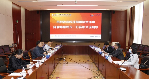 4月16日上午,科技部國際合作司副司長陳霖豪、歐亞處處長周宇、歐亞處調(diào)研員谷敏、段予瑩一行來中國食品發(fā)酵工業(yè)研究院考察指導(dǎo)國際科技合作情況,食品院董建輝總經(jīng)理、副總經(jīng)理魯軍、段盛林、相關(guān)研發(fā)部主任參加了座談。