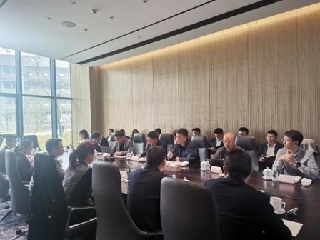 4月14日董建輝一行參觀了瀘州老窖公司的全自動化的生產與包裝車間,與瀘州老窖公司質量管理中心總經理王明等就白酒行業標準法規和風險檢測、2021年度合作以及未來三年戰略合作細則展開詳細的溝通探討。