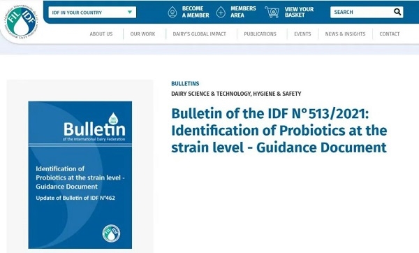 2021年12月15日,國際乳品聯(lián)合會(IDF)正式發(fā)布《IDF公報(bào)No.513/2021 益生菌菌株水平鑒定指導(dǎo)文件》(Bulletin of the IDF No. 513/2021: Identification of Probiotics at the strain level - Guidance Document)。這是我國首次主導(dǎo)完成的國際IDF指導(dǎo)文件,由中國食品院副院長、IDF乳微生物分析方法委員會(SCAMDM)主席姚粟教授團(tuán)隊(duì)牽頭修訂,項(xiàng)目組成員包括來自中國、法國、波蘭、丹麥、新西蘭、瑞士、比利時(shí)、德國、日本等成員國專家,同時(shí)得到來自IDF中國國家委員會、IDF各技術(shù)委員會和各國家委員會的積極參與,引起國內(nèi)外學(xué)術(shù)界和產(chǎn)業(yè)界的高度關(guān)注。