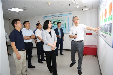 會(huì)前,肖丹一行參觀了研究所科技展廳及主要成果展區(qū),了解其國(guó)家合成生物技術(shù)創(chuàng)新中心高通量平臺(tái)及十大科技成果情況。