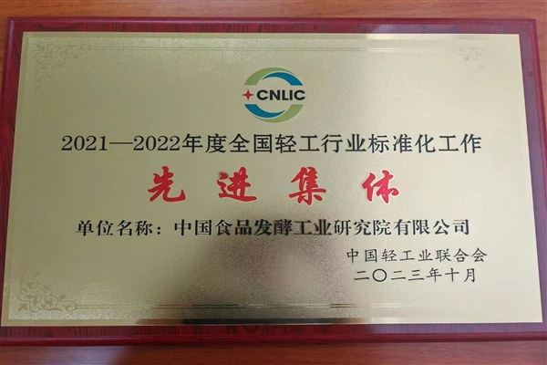 中國食品院榮獲“2021—2022年度全國輕工行業標準化工作先進集體”稱號