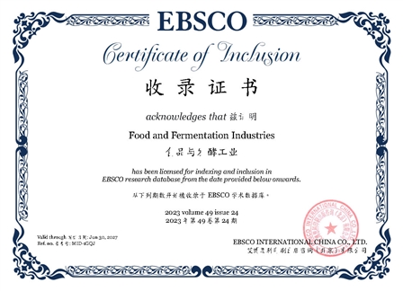 中國食品院《食品與發(fā)酵工業(yè)》期刊被EBSCO數(shù)據(jù)庫正式收錄,這是對我刊學術水平和影響力的充分肯定,標志著我刊得到了更廣泛的國際認可。