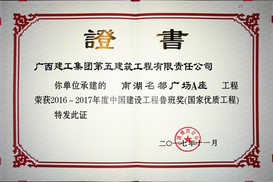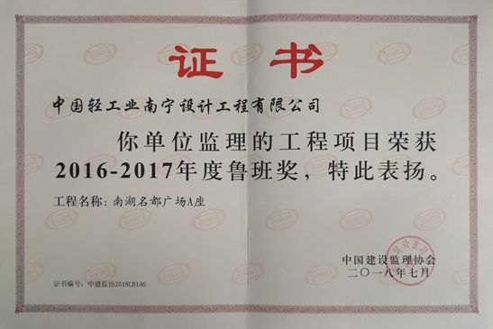 近日,海誠股份南寧公司監(jiān)理的工程項(xiàng)目—南湖名都廣場榮獲中國建設(shè)監(jiān)理協(xié)會(huì)授予“2016-2017年度魯班獎(jiǎng)”。魯班獎(jiǎng)是中國建筑行業(yè)工程質(zhì)量最高榮譽(yù)獎(jiǎng),這是公司繼廣西壯族自治區(qū)人民檢察院業(yè)務(wù)技術(shù)偵查綜合樓(2005年獲魯班獎(jiǎng))、廣西南寧市國土交易綜合樓(2011年獲魯班獎(jiǎng))后,再次獲此殊榮,具有里程碑的意義。