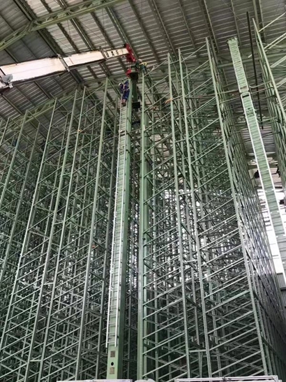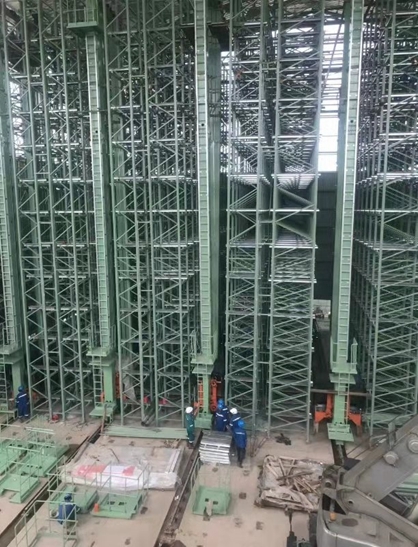 印尼亞太立體庫項目總貨位數為3792個,按貨位規格可存放紙卷2876噸,最大可存儲紙卷規格為直徑φ1200×幅寬1800mm,最大可儲存紙卷重量1500kg。6臺堆垛機負責紙卷的出入庫轉運,入庫能力110卷/小時,出庫能力110卷/小時,空載運行速度120m/min,負載運行速度100m/min。