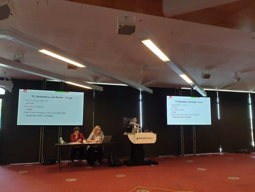 在SO/TC6全體會議上,造紙院黎的非作為 “竹和藤技術委員會(TC/296)”的聯絡員,匯報了近一年來TC/296的標準項目動態;造紙院呂衛軍代表中國向各國專家發出邀請,歡迎大家參加2021年由中國主辦造紙院承辦的ISO/TC6全體年會。