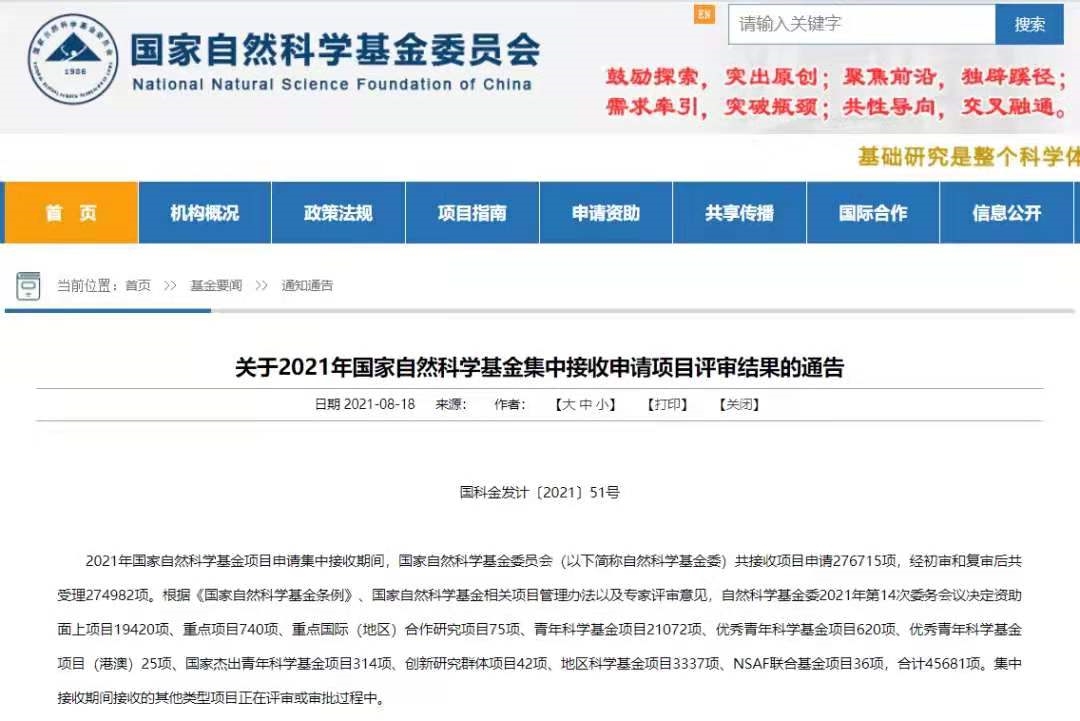 近日,國家自然科學基金委員會發布《關于2021年國家自然科學基金集中接收申請項目評審結果的通告》(國科金發計〔2021〕51號),保利中輕所屬兩家研究院獲批2個國家自然科學基金項目。