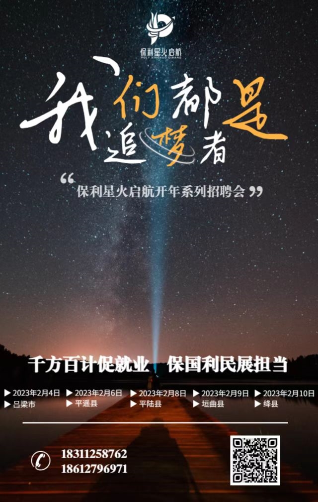 春風送真情,援助暖民心。為將更多境外優質崗位提供給山西省群眾,助力當地群眾就業增收,2023年2月,保利中輕所屬中輕控股派遣的保利星火啟航項目組參加了山西省人力資源和社會保障廳在山西各地陸續舉辦的“惠民生 促就業”—春風行動暨就業援助月系列招聘活動,分別赴山西省晉中市平遙縣、呂梁市離石區、興縣、運城市平陸縣、垣曲縣等地現場招聘。