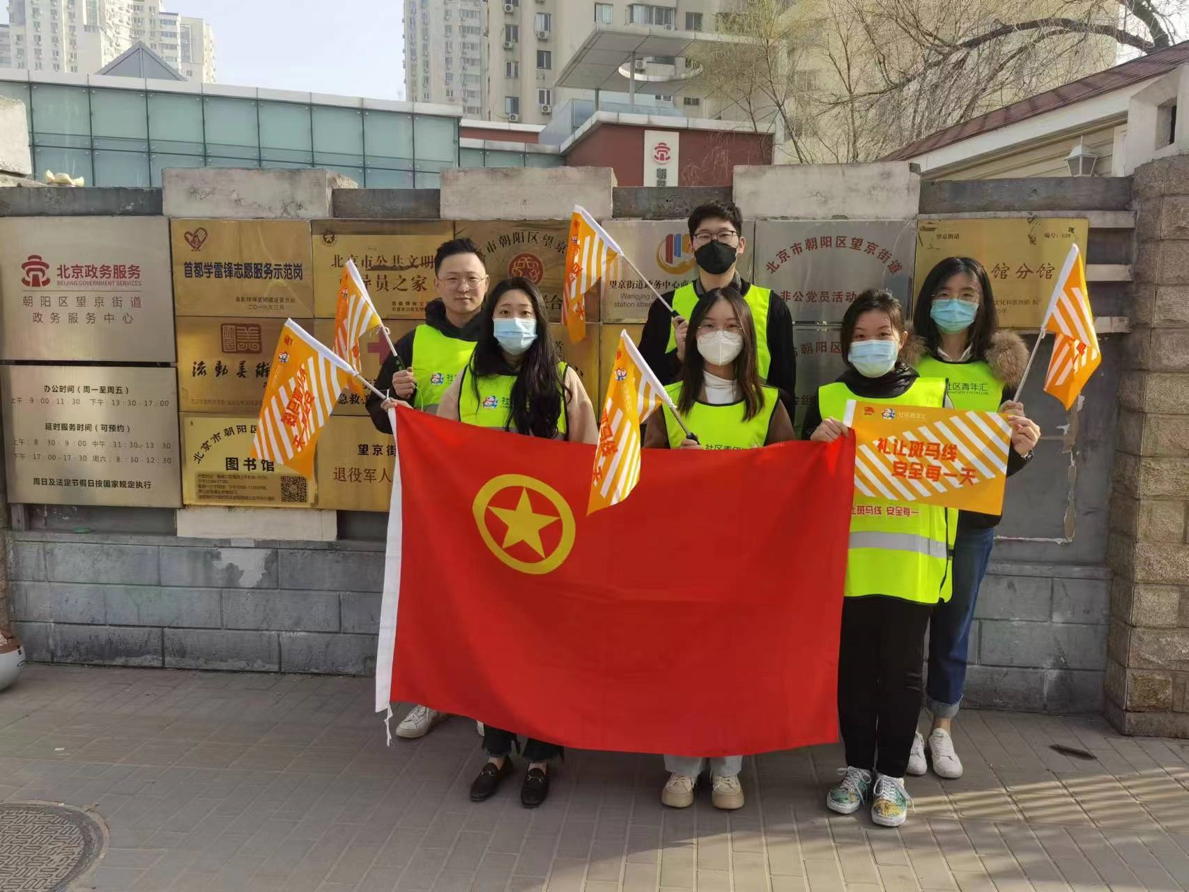 中輕控股團委組織團員青年參與望京街道“禮讓斑馬線志愿服務”活動,維護轄區要道高峰期交通秩序,幫助居民樹立交通安全意識。