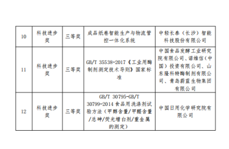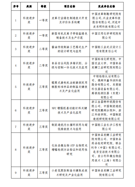 保利中輕獲得2022年中國輕工業聯合會科技獎明細