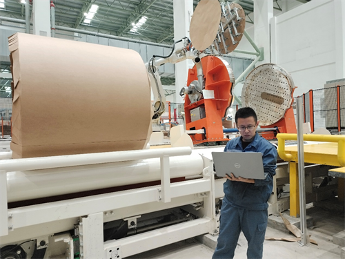 在馬來西亞玖龍項目的紙卷輸送包裝車間,一位工作人員正在通過電腦連接生產(chǎn)線進行調(diào)試。他注意力高度集中,根據(jù)紙卷包裝運行狀態(tài)有條不紊地調(diào)整著各項參數(shù),很快地,一個個紙卷像聽懂了他的命令一般,整齊有序地依次排隊入庫……
