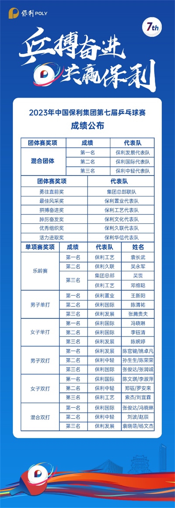 保利集團第七屆乒乓球比賽獲獎情況