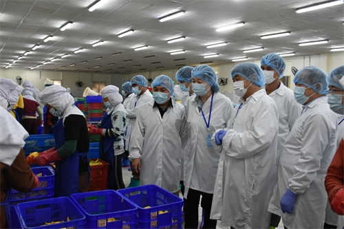 此外,曹春昱一行還赴金邊本地Kirirom食品加工廠和KHMER BEVERAGES啤酒公司進行調研考察,參觀了芒果干生產車間、啤酒生產線及檢測實驗室,與企業相關負責人進行深入交流。雙方就芒果制品深加工,特別是在芒果飲料、芒果酵素等新產品開發和技術交流方面合作,達成初步合作意向。