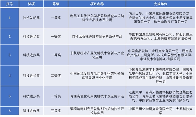 中國輕工業聯合會科學技術獎是由中國輕工業聯合會設立的最高輕工科技獎項之一,被譽為輕工業“榮譽勛章”,旨在表彰我國輕工業領域的科學研究、技術創新與開發、科研成果推廣和實現高新技術產業化中作出突出貢獻的組織和個人。