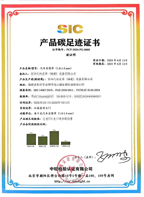 中輕檢驗頒發的《產品碳足跡證書》