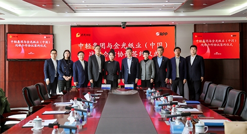 1月21日,保利中輕與金光紙業(中國)投資有限公司(簡稱“APP(中國)”)在北京簽署戰略合作協議。保利中輕黨委副書記、總經理趙國昂,金光集團APP副總裁翟京麗代表雙方簽約,并就雙方在科技研發、智能制造、市場拓展等方面深化合作展開交流。簽約儀式由保利中輕副總經理孫波主持。