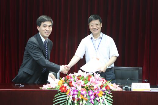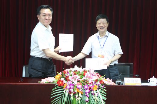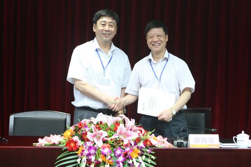 集團公司總經理俞海星與食品發酵院院長蔡木易簽訂任務合同書