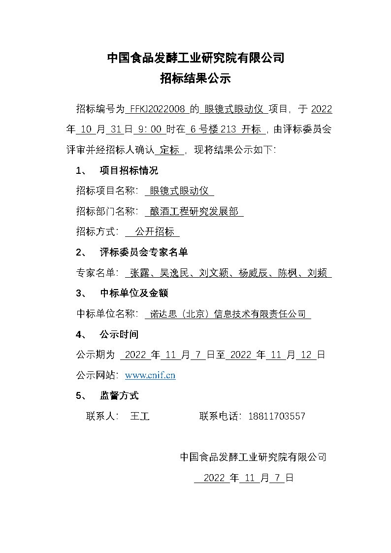 招標結(jié)果公示——眼鏡式眼動儀(招標編號:FFKJ2022008)