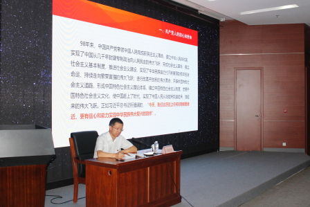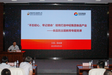 根據(jù)集團(tuán)黨委工作安排和“不忘初心、牢記使命”主題教育部署要求,2019年8月2日, 集團(tuán)公司總會計(jì)師、主題教育第二巡回指導(dǎo)組組長段趙清一行赴食品院講授黨課并開展調(diào)研。食品院黨政班子、中層以上干部及全體在職黨員90余人參加了學(xué)習(xí)。