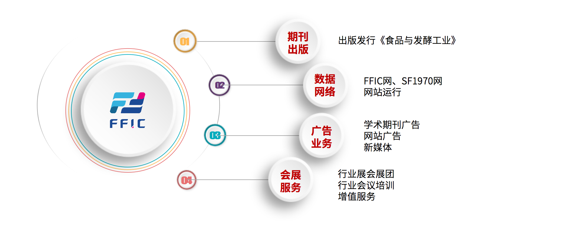 全國食品與發酵工業信息中心(FFIC)是面向食品與發酵全行業服務的信息組織。以服務科技創新和行業生產為宗旨,全力打造全國食品與發酵工業信息交流平臺,以食品行業大數據研究,行業排名,學術期刊出版,行業會議平臺,行業信息和新聞權威發布,新技術、新成果、新產品推廣和應用等為工作重點,為食品與發酵行業相關企事業單位提供全方位的信息咨詢、會議培訓、技術交流、行業分析和科普宣等增值服務。